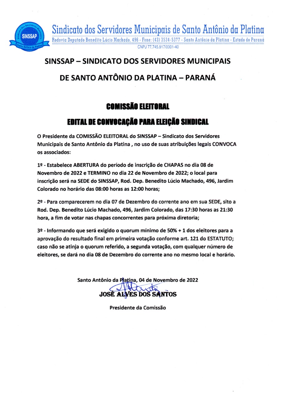Edital eleição sinssap